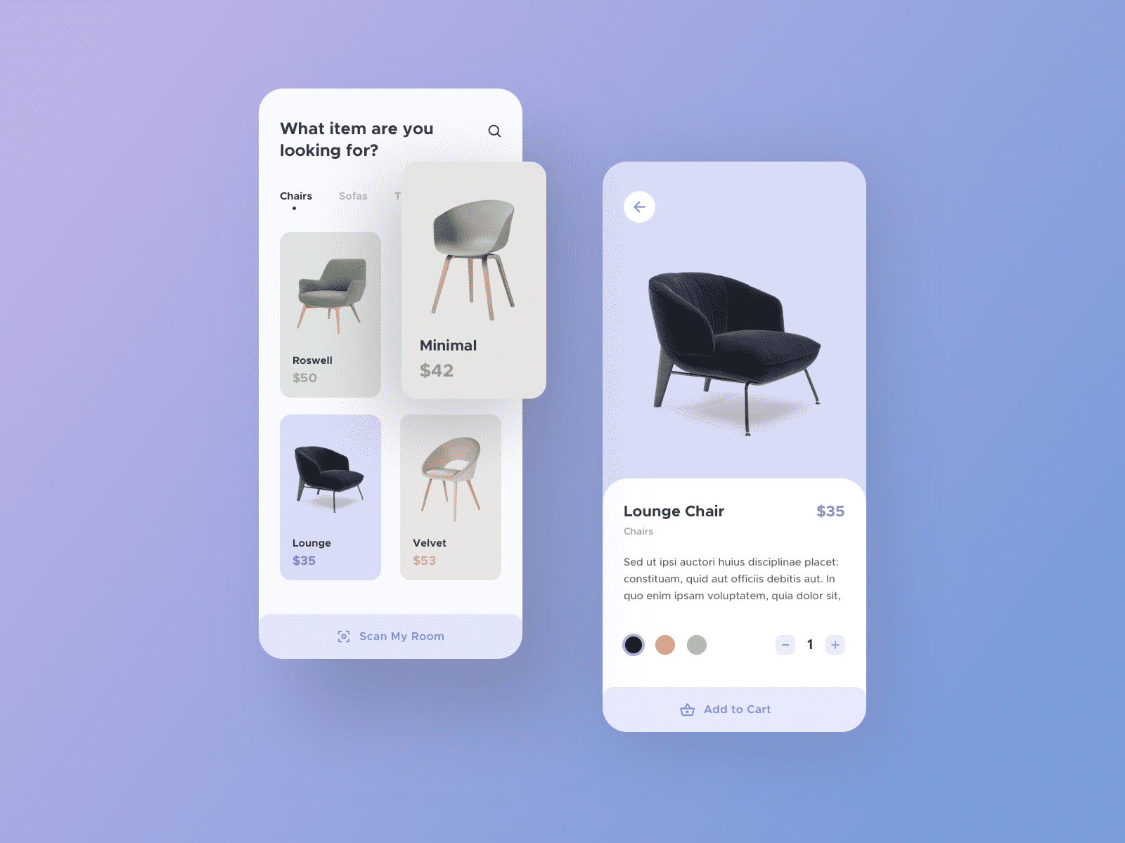 The images used to demo this digital / downloadable product are created by Atiqur Rahman. Find the original project on dribbble.com: Furniture Buy & Sell E Commerce App